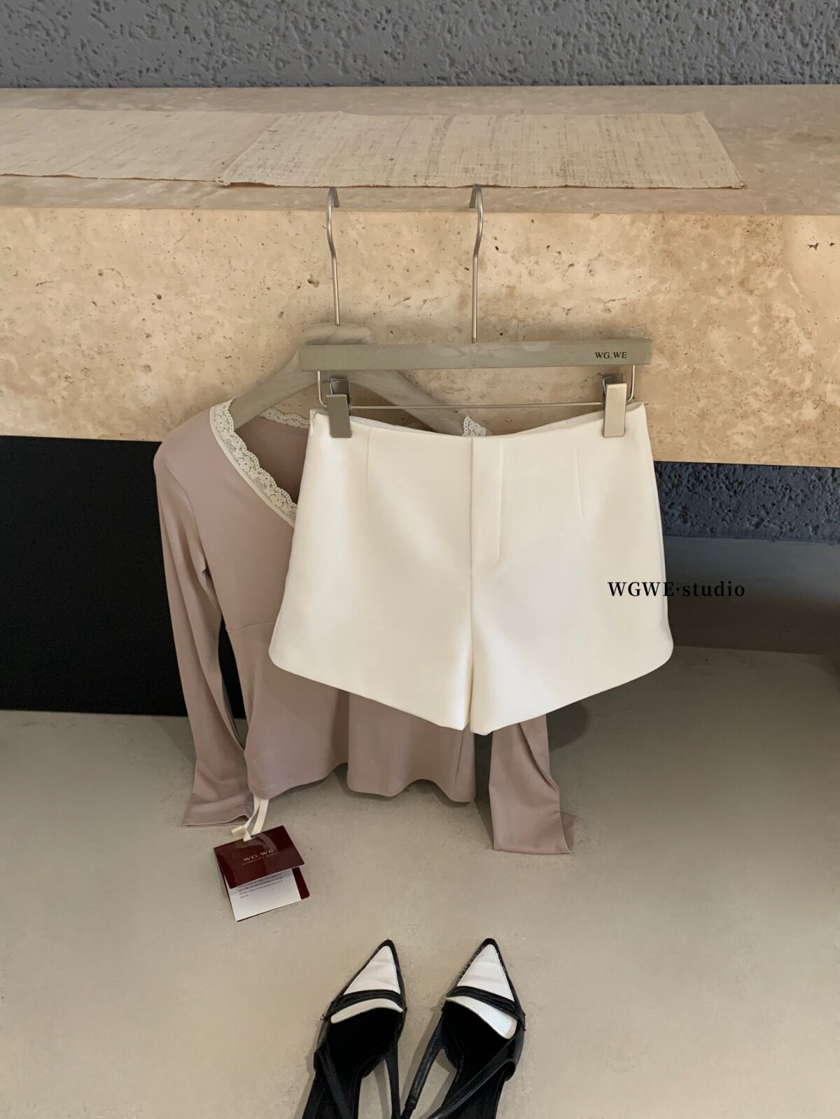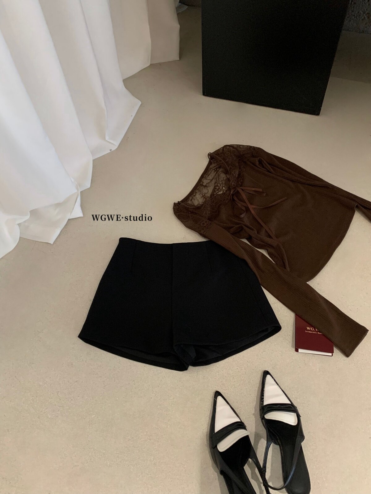 Осенний костюм, шорты, в корейском стиле, высокая талия, А-силуэт, изысканный стиль