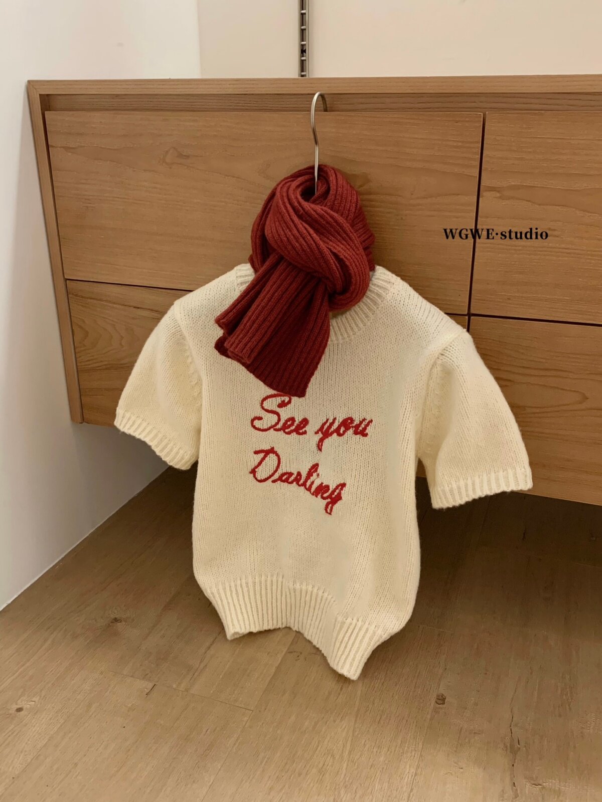 Демисезонный трикотажный свитер с круглым воротником, с вышивкой, короткий рукав, свободный крой
