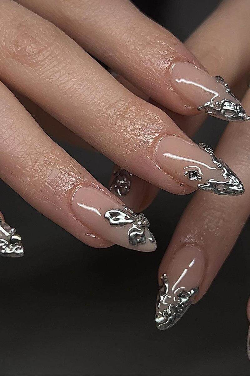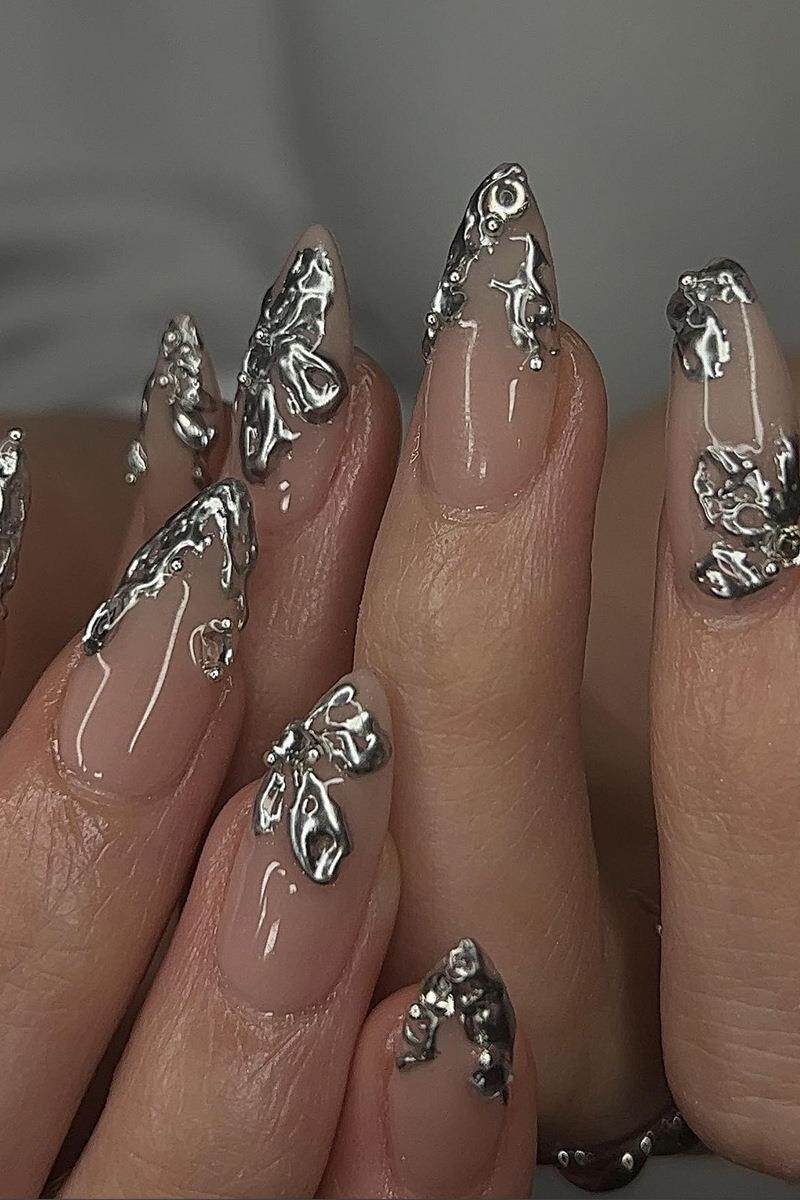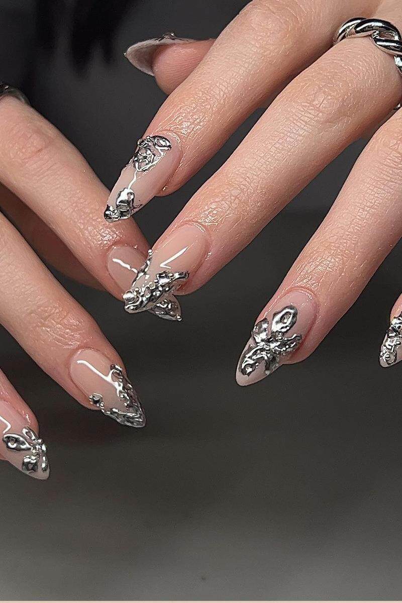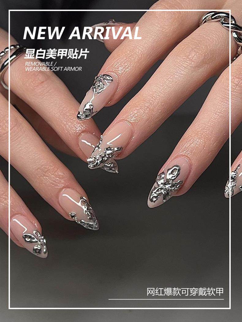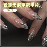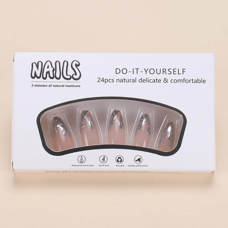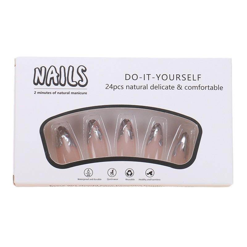 Серебряные наклейки для ногтей, накладные ногти для маникюра для ногтей, готовый продукт, 24 штук, (Трансграничная торговля)